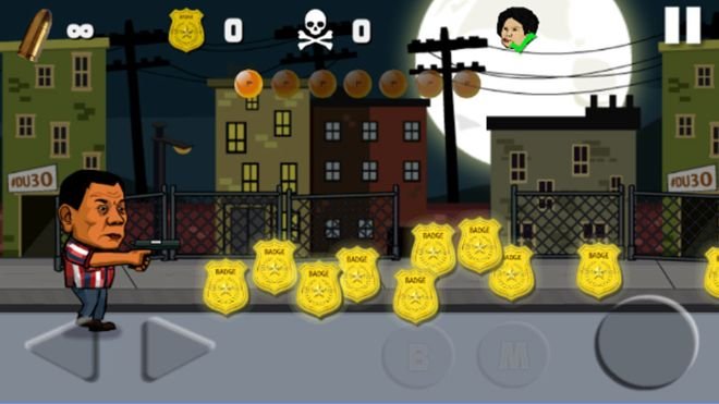 تتعلق كل هذه الألعاب إما بالرئيس الفلبيني دوتيرتي أو برئيس الشرطة الفلبينية رونالد "باتو" ديلا روزا وهو يطلق النار على المجرمين.