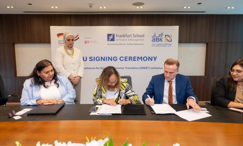 في إطار جهوده المستمرة في دعم التمويل المستدام وتعزيزاً لدوره في تحقيق أهداف التنمية المستدامة والتحول نحو الاقتصاد الأخضر ودعماً لرؤية مصر 2030، أعلن البنك الأهلي الكويتي – مصر عن توقيع مذكرة تفاهم مع جامعة فرانكفورت للعلوم المالية والإدارية Frankfurt School of Finance & Management، لتقديم دعم فني متخصص في تطوير المنتجات المالية الخضراء، وذلك ضمن مبادرة التحول نحو الاقتصاد الأخضر Green Resilience for Egypt’s Economic Transition (GREET) المدعومة من الوكالة الألمانية للتعاون الدولي.