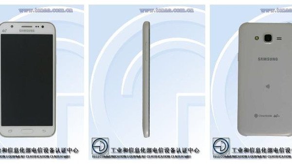 وقد ظهرت صور الهاتفين على موقع هيئة TENAA الصينية المختصة بترخيص الهواتف في الصين، حيث يأتي هاتف Galaxy J5 بشاشة بقياس 5.0 إنش، ومعالج سنابدراجون 410 رباعي النواة بتردد 1.2 جيجاهرتز، وذاكرة عشوائية 1.5 جيجابايت، وذاكرة داخلية 8 جيجابايت، وبطارية بسعة 2400 مللي أمبير، ومنفذ لذاكرة خارجية Micro-SD، ويبلغ سمك الهاتف 8.5 مللي متر، ويزن 149 جرام.