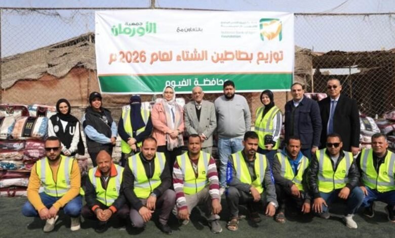 جمعية البنك الأهلي المصري للأعمال الخيرية تطلق مبادرة لتوزيع1000 بطانية بمحافظة الفيوم بالتعاون مع جمعية الاورمان