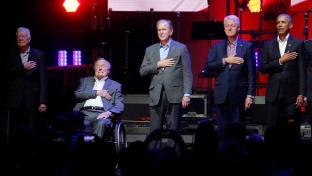 دعم الرؤساء الديمقراطيون الثلاث والرئيسان الجمهوريان حملة "مناشدة من أجل أمريكا واحدة"، التي نُظمت لمساعدة متضرري أعاصير هارفي وإرما وماريا المدمرة التي ضربت الولايات المتحدة.