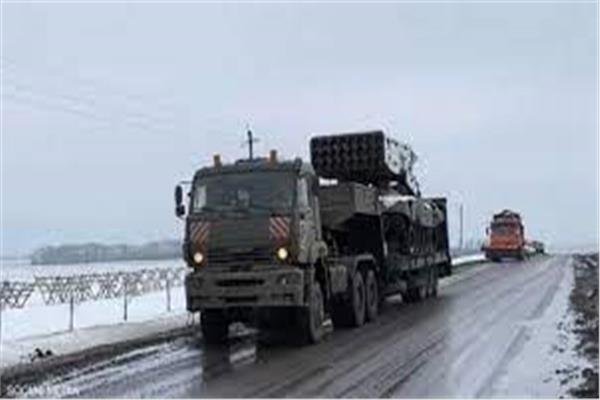 نشرت مقاطع فيديو لشاحنة عسكرية روسية قرب أوكرانيا، تحمل على متنها راجمة صواريخ تعرف باسم “قاذفة اللهب”.