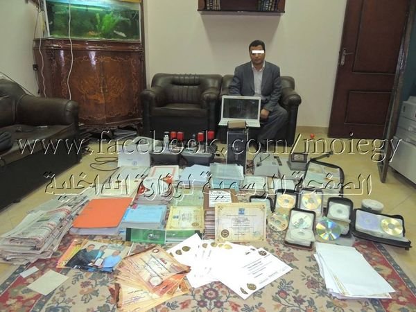 عقب تقنين الإجراءات تم ضبط المتهم الاول وبتفتيش مسكنه ومقر النقابة تم ضبط الآتى :