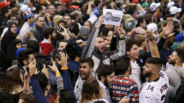 واشتبك المؤيدون والمحتجون بالأيدي مما اضطر ترامب إلى إلغاء المهرجان بينما سارع المعلقون إلى وصف هذا الاستقطاب وكأنه مشهد من العنف الذي هز شيكاغو عام 1968.