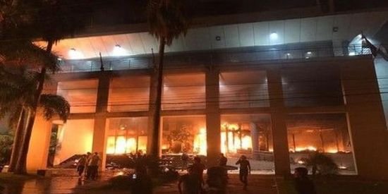 محتجون يشعلون النار بمبنى الكونجرس بباراجواي