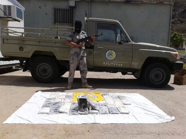 تمكن حرس الحدود السعودي، في منطقة ظهران الجنوب، على الحدود مع اليمن، خلال الأسبوع الماضي من مصادرة 33 رشاش نوع كلاشنكوف، و12 بندقية بلجيك، و720 طلقة رشاش كلاشنكوف، و27 كيلو من مادة الحشيش المخدر، بالإضافة إلى ما زنته 146 كيلوجراماً من مادة القات.