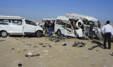 مصرع واصابة 34 فى تصادم اتوبيسين وسيارة نقل امام نفق الموت ببنى سويف