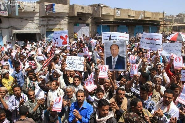 وتابعت هذه المصادر لوكالة فرانس برس ان المتظاهرين تجمعوا لليوم الثالث على التوالي للاحتجاج على وجود الحوثيين الذين استولوا في نهاية الاسبوع الماضي على مطار المدينة ومعسكر للقوات الخاصة فيها.